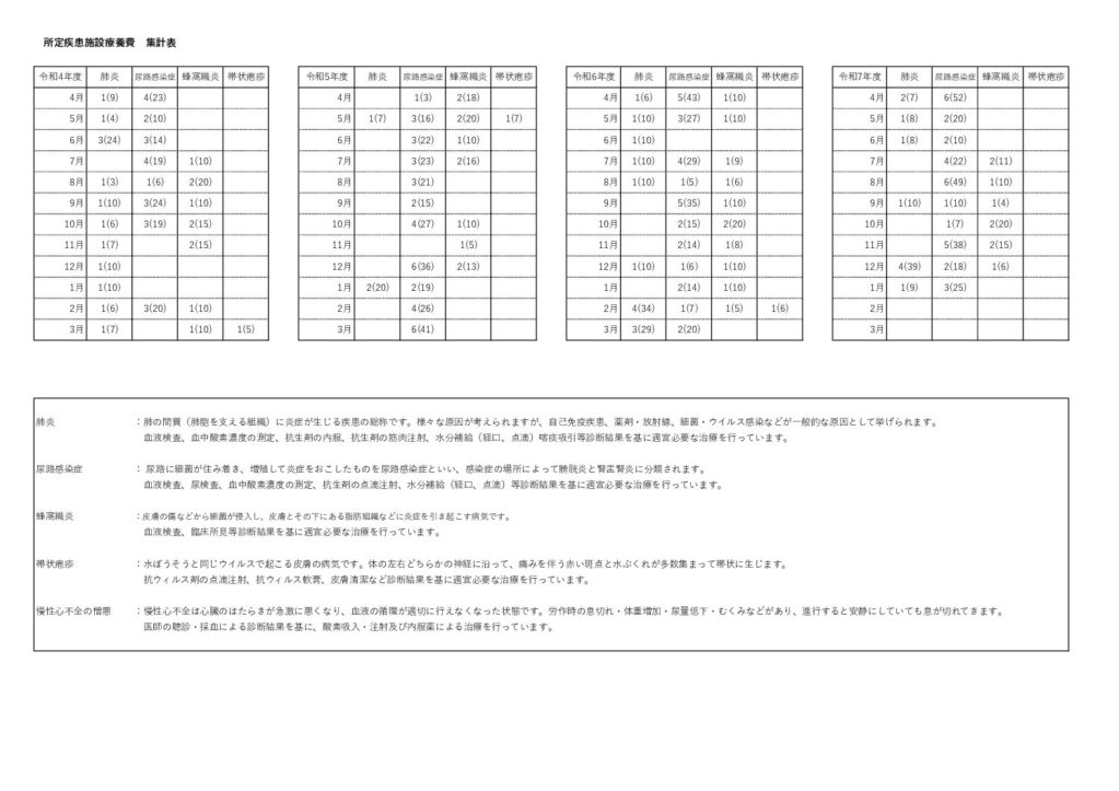 所定疾患に関する集計を添付しておりますのでご覧ください。